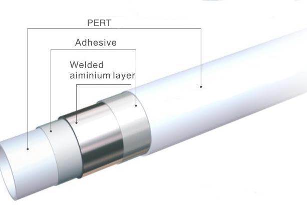 Construction 5 layer Pert, adhesive, aluminium, adhesive, pert