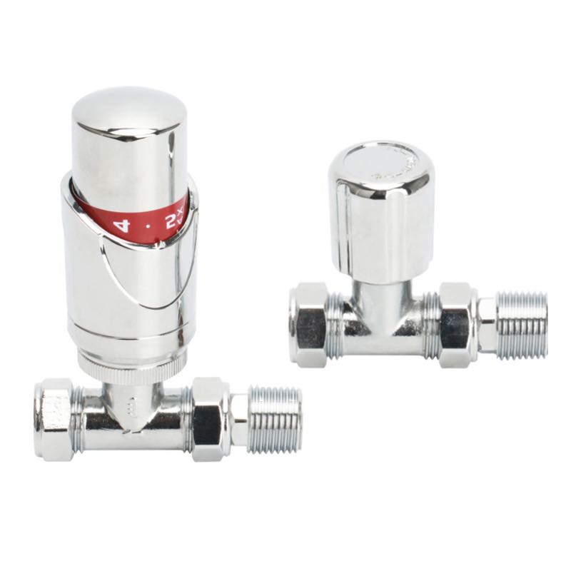 Straight Pattern Radiator TRV & Lockshield Set